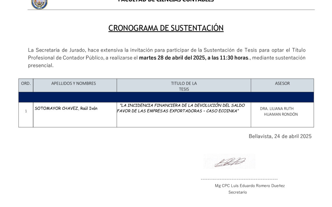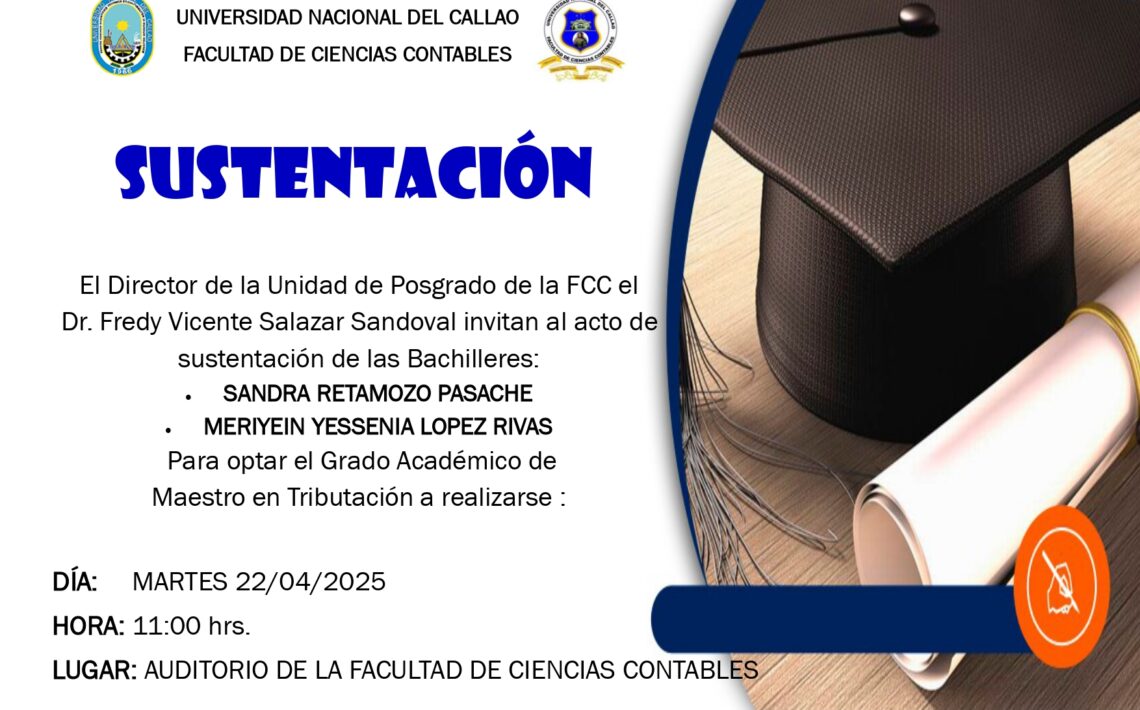 Posted on 15/04/2025 Editor FCC No Comments SUSTENTACIÓN DE TESIS PARA OPTAR EL GRADO ACADEMICO DE MAESTRO EN TRIBUTACIÓN Read More