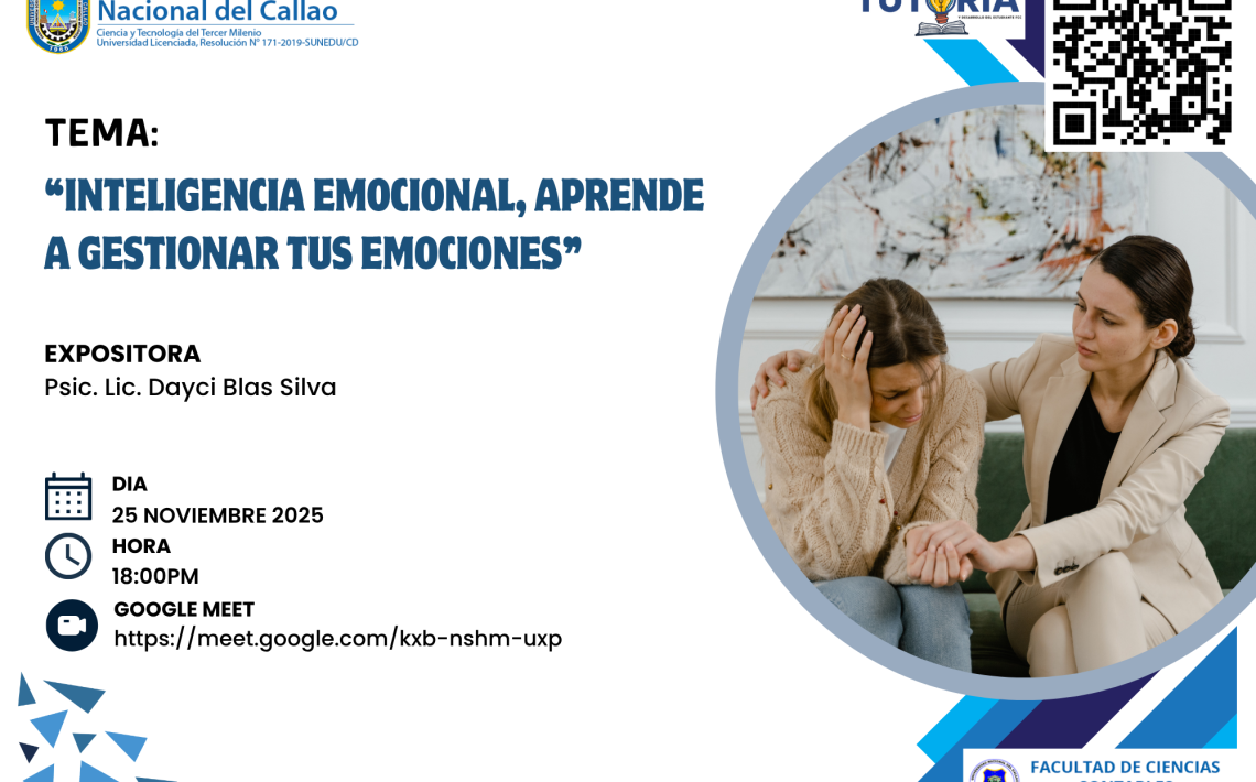 Posted on 20/11/2025 otic2 Facultad No Comments Conferencia Virtual FCC-UNAC: “INTELIGENCIA EMOCIONAL, APRENDE A GESTIONAR TUS EMOCIONES” GOOGLE MEET Read More