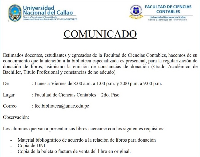 Podrá visualizar el Manual del Sistema de Biblioteca Especializada FCC para acceder al material Bibliográfico de la Facultad de Ciencias Contables , ingresar en el siguiente enlace: