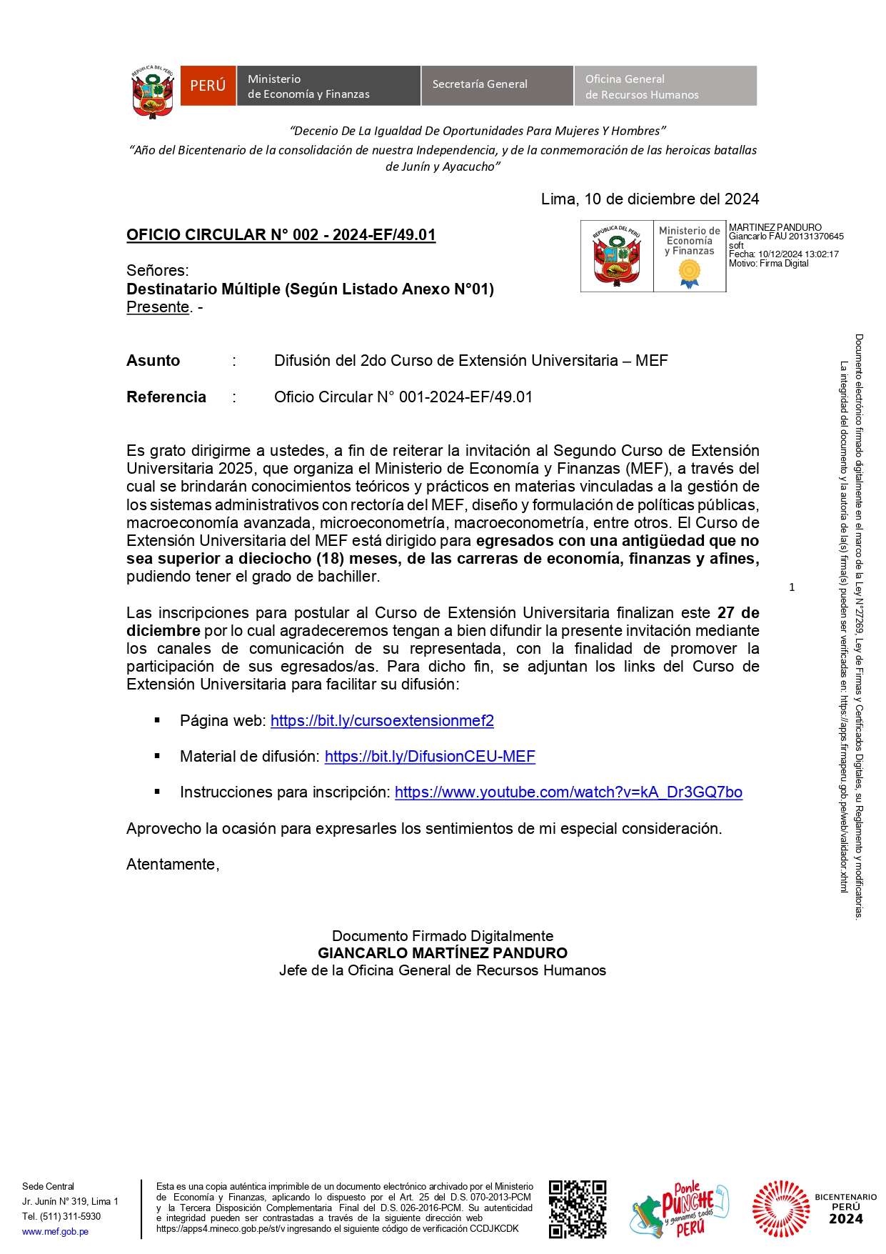 CURSO DE EXTENSIÓN UNIVERSITARIA MEF 2025