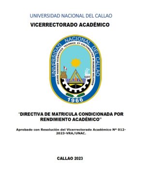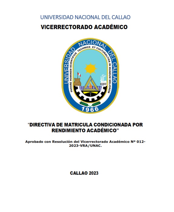 Con el objetivo de dar un mejor servicio en los trámites administrativos de los diferentes servicios académicos que brinda esta Unidad pone a su disposición la “Directiva de Matricula Condicionada por Rendimiento Académico de la Universidad Nacional del Callao” aprobada con Resolución de Vicerrectorado Académico Nº 012-2023 VRA/UNAC-CALLAO, 11 de Agosto del 2023, accesibles que podrán bajar de la página web de la facultad.