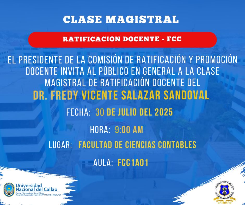INVITACIÓN A LA CLASE MAGISTRAL DE RATIFICACIÓN DOCENTE DEL DR. FREDY VICENTE SALAZAR SANDOVAL”