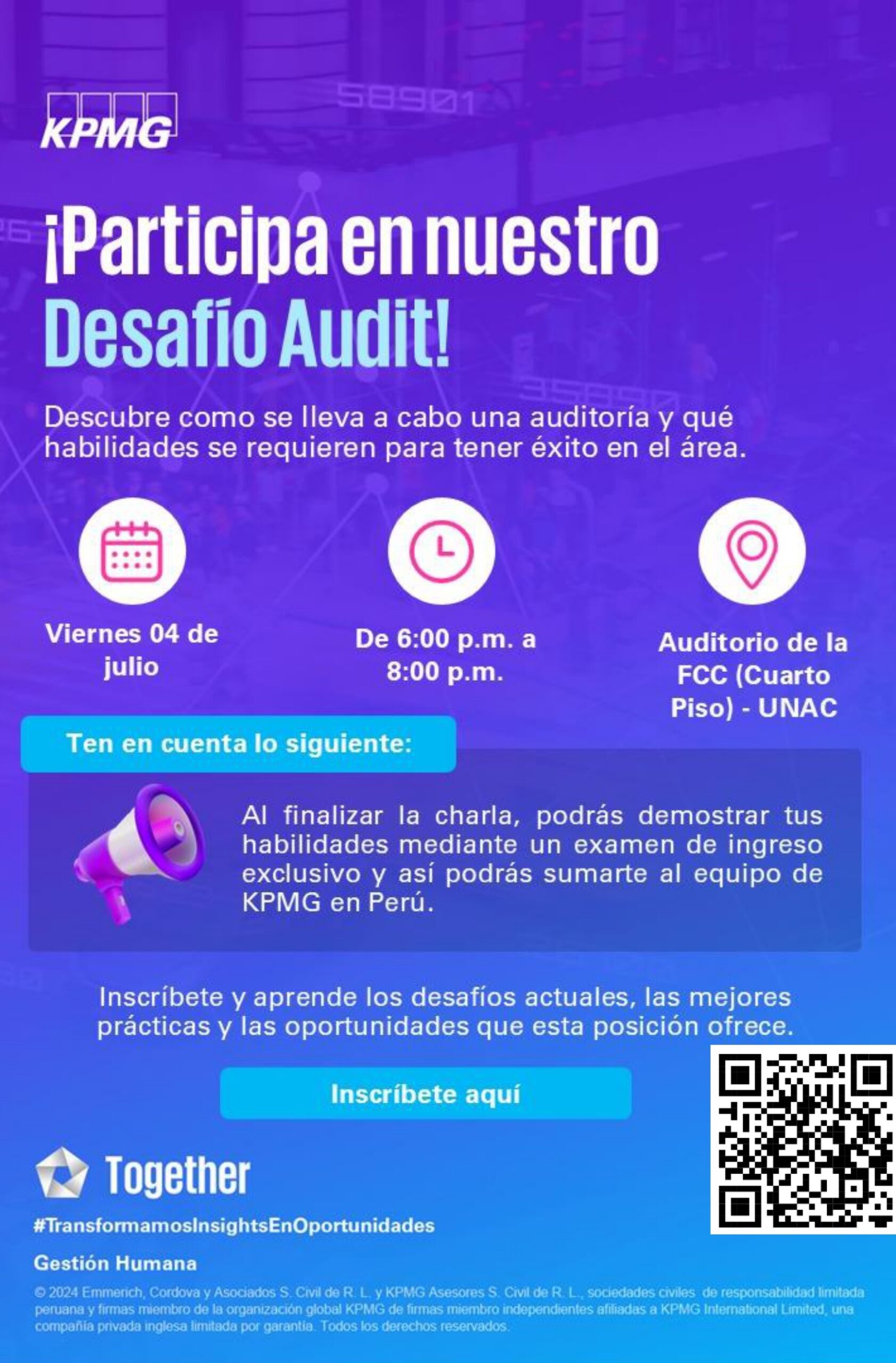 PARTICIPA EN LA CHARLA CERS-FCC – UNAC Y KPMG : “DESAFIO AUDIT”
