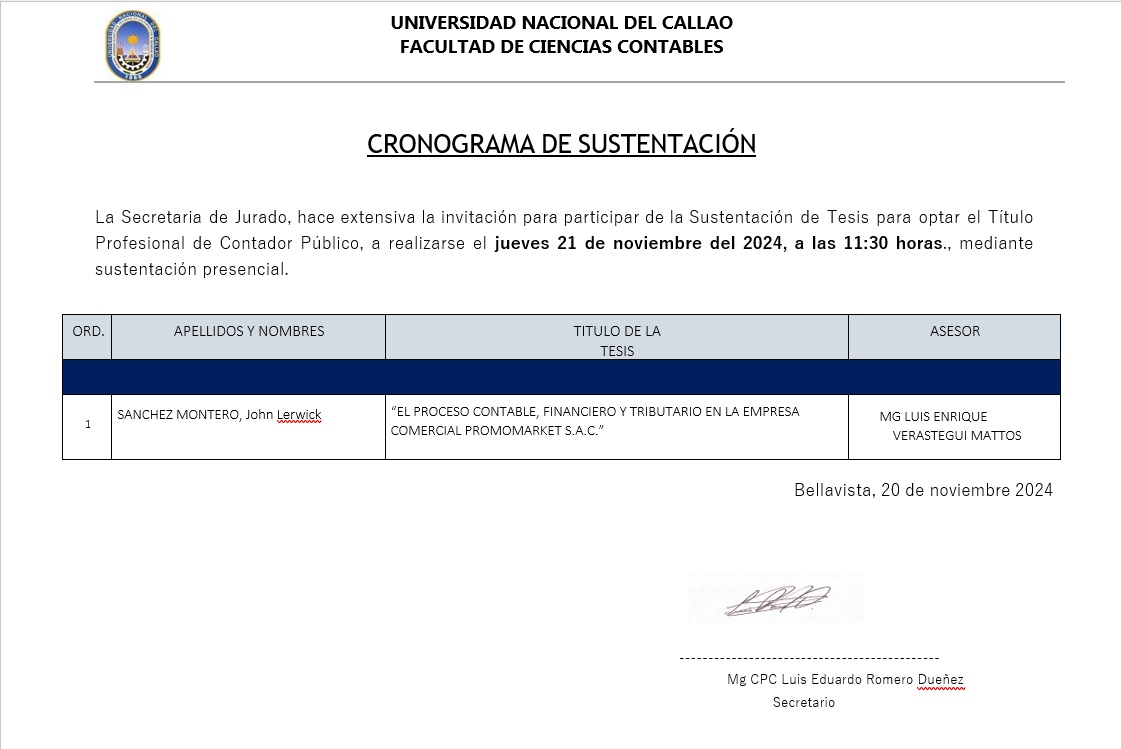 Posted on 20/11/2024 Editor FCC No Comments SUSTENTACIÓN DE INFORME DE TRABAJO DE SUFICIENCIA PROFESIONAL