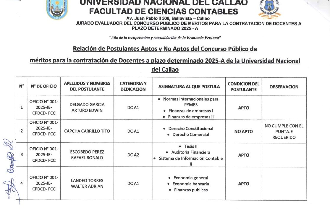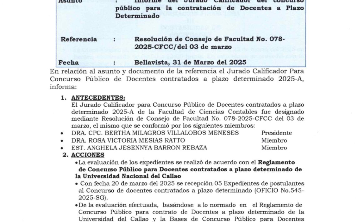 Posted on 31/03/2025 Editor FCC No Comments RESULTADO FINAL DEL CONCURSO PUBLICO DE MÉRITOS PARA CONTRATACIÓN DE DOCENTES A PLAZO DETERMINADO 2025-A Read More