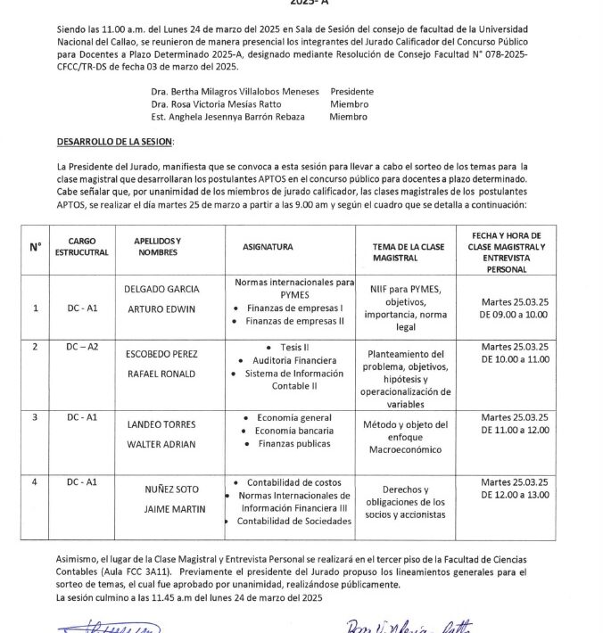 Posted on 24/03/2025 Editor FCC No Comments CONCURSO PÚBLICO DE DOCNETES 2025-A: “CUADRO DE RESULTADOS DEL SORTEO PARA EL DESARROLLO DE CLASES MAGISTRALES POR PARTE DE LOS POSTULANTES” Read More
