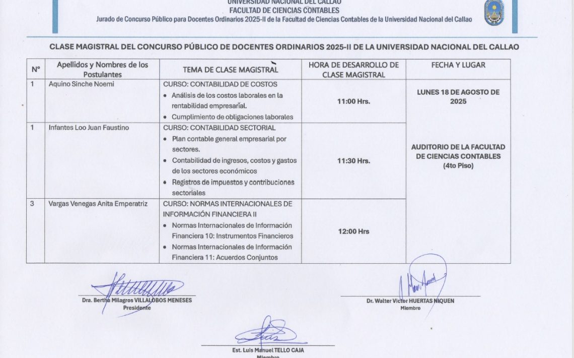 Posted on 14/08/2025 Editor FCC No Comments LISTADO DE TEMAS PARA CLASE MAGISTRAL DEL CONCURSO PÚBLICO DE DOCENTES ORDINARIOS 2025-II – UNAC Descargar FE DE ERRATAS – CONCURSO PÚBLICO DE DOCENTES ORDINARIOS 2025-II Read More