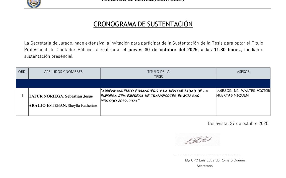 Posted on 22/10/2025 otic2 Facultad No Comments CRONOGRAMA DE SUSTENTACIÓN DE TESIS/TITULACIÓN PROFESIONAL Read More