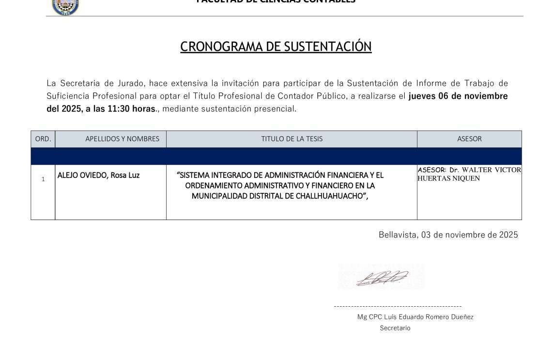Posted on 27/11/2025 otic2 Facultad No Comments CRONOGRAMA DE SUSTENTACIÓN DE TESIS/TITULACION PROFESIONAL Read More