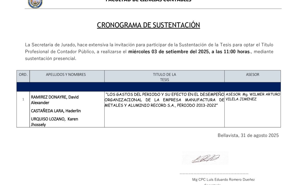 Posted on 27/08/2025 otic2 Facultad No Comments CRONOGRAMA DE SUSTENTACIÓN DE TESIS/TITULACIÓN PROFESIONAL – 28 AGOSTO Read More
